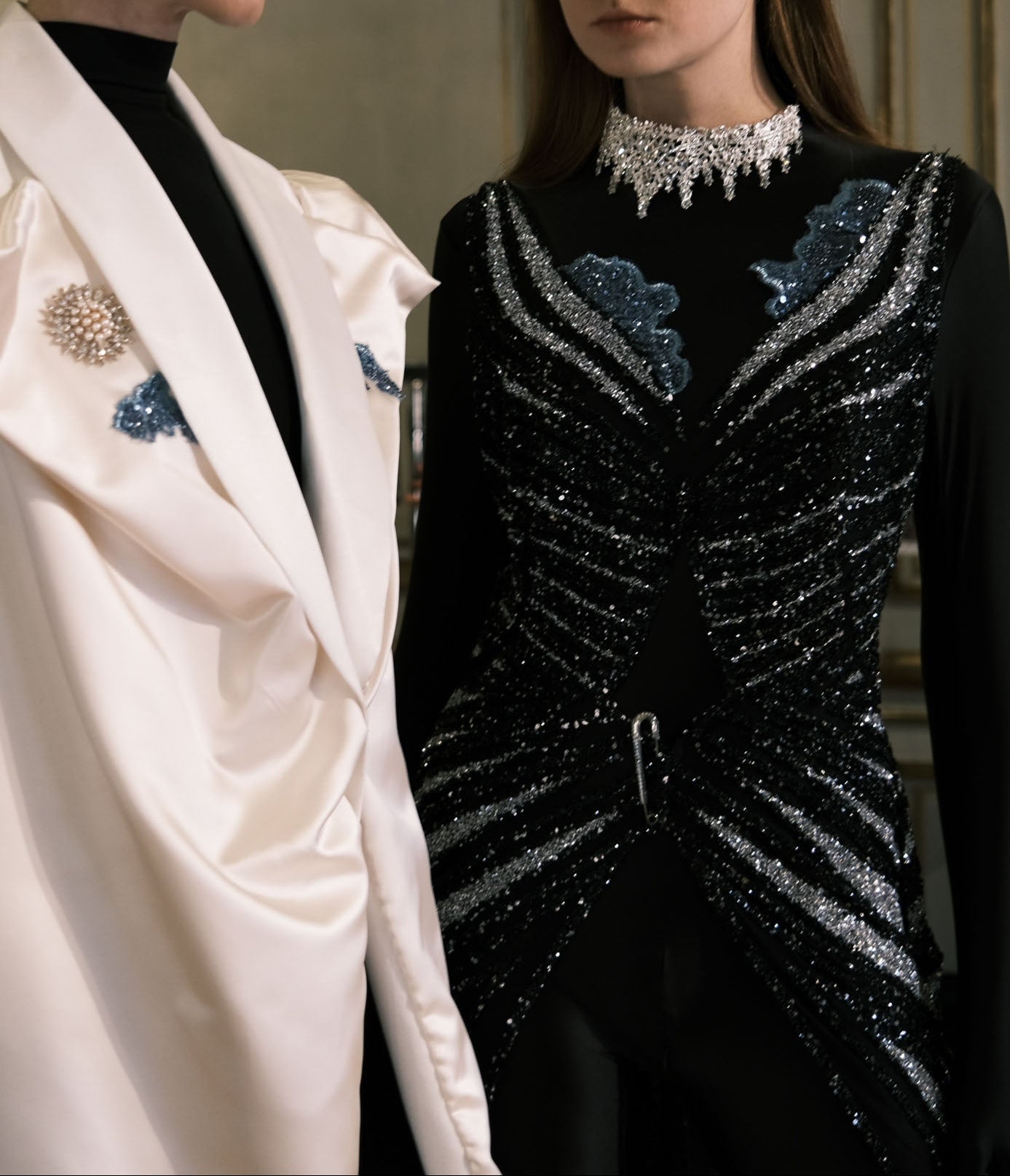 Crystal and glass stones - Silver plated brass metal