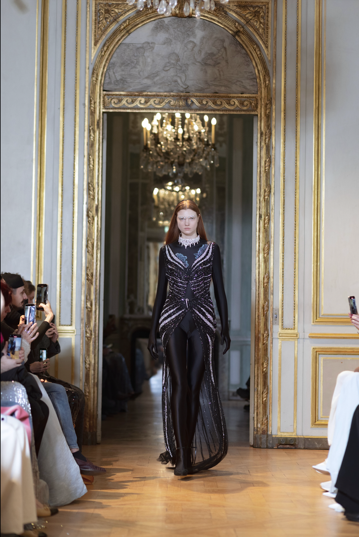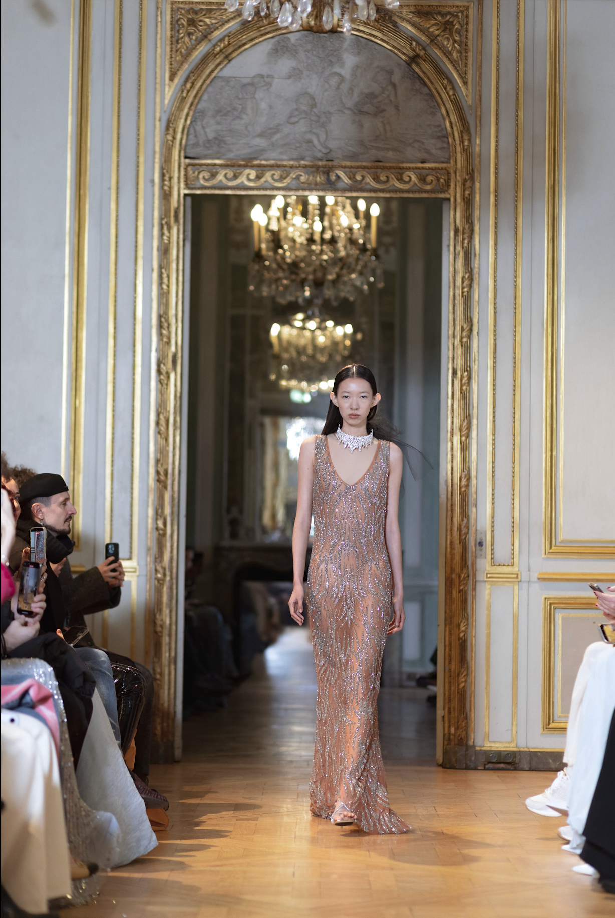 The Couture Tiara Choker Necklace is a limited edition and is created in sterling plated brass metal, set with crystal and glass stones.